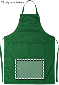 Adjustable kitchen apron with 2 front pockets in 10% cotton/90% polyester, 190gr/m².