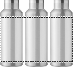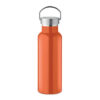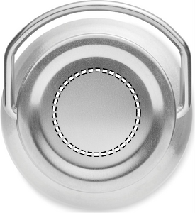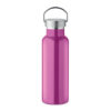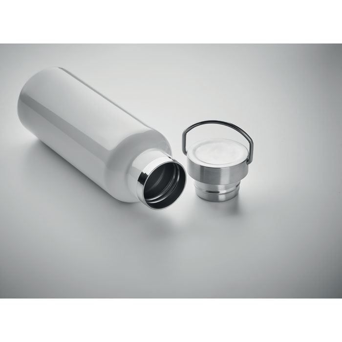 Double wall insulating vacuum bottle in recycled stainless steel (90 % recycled stainless steel and 10% stainless steel) with lid with handle. Capacity: 500 ml.