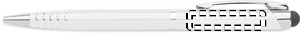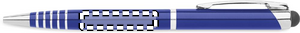 Twist action ball pen in recycled aluminium with stylus. Blue ink.