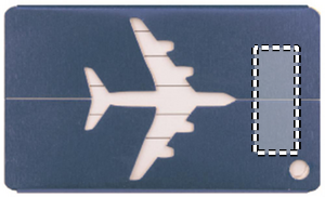 Aluminium airplane luggage tag with name and address label. Comes with metal string and screw connector.