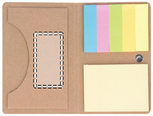 Cardholder in kraft paper. Medium yellow recycled paper sticky notes pads and 5 assorted colours page markers. Elastic closure strap.