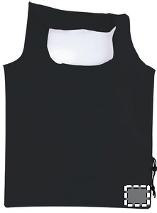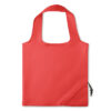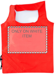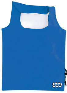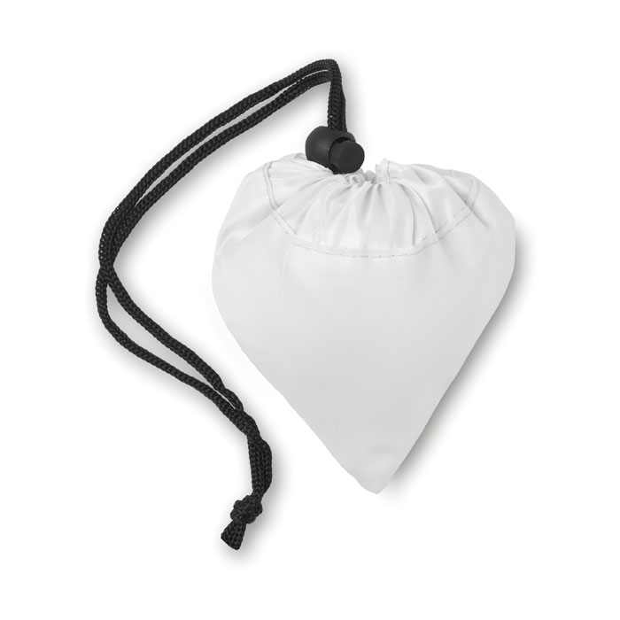 Foldable shopping bag in 210D polyester with drawstring closure on pouch.