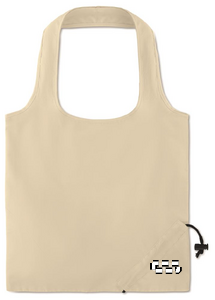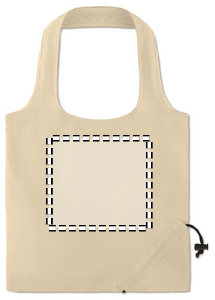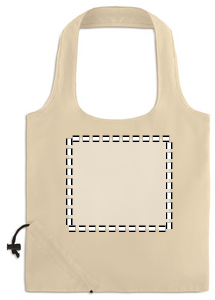 Foldable shopping bag in cotton with short handles with drawstring closure on pouch. 105 gr/m².