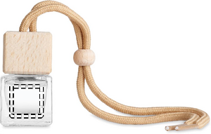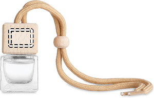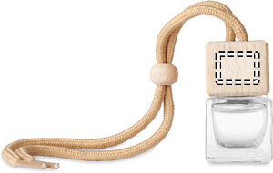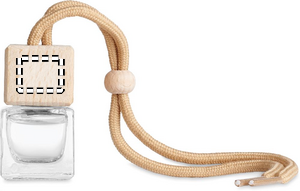 Refillable car air freshener with new car fragrance diffuser with essential oils. Everybody loves the smell of a new car, so hang this air freshener in your vehicle to get that new car experience. The stylish glass container with beech wood lid will also give the interior of your car a nice look. Refill the container with your favourite scent when it is empty. Capacity 5 ml.