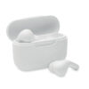 ABS True Wireless Stereo (TWS) 5.3 wireless stereo earbuds with microphone and 30 mAh battery. Playing time approx. 3 hours. Type-C input. Auto-pairing. Including a Type C charging cable and a 180 mAh charging station.