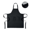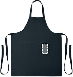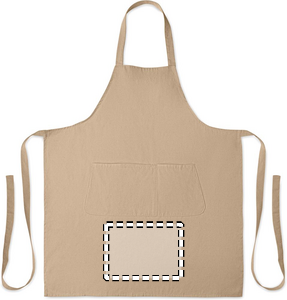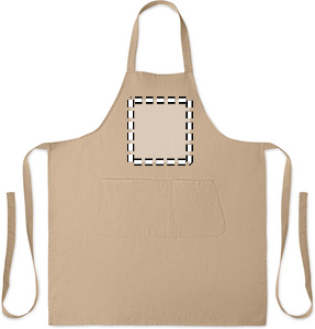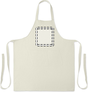 Adjustable bib apron with 1 large front pocket with 2 compartments in 240 gr/m² organic cotton. With adjustable button on the neck strap.