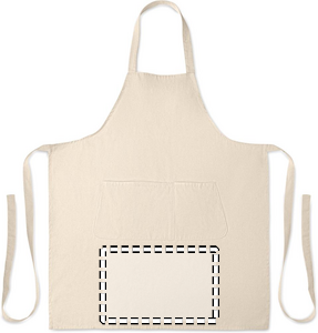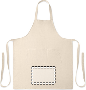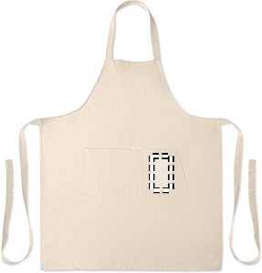 Adjustable bib apron with 1 large front pocket with 2 compartments in 240 gr/m² organic cotton. With adjustable button on the neck strap.