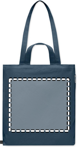 Recycled polycotton shopping or beach bag (70% recycled cotton, 30% recycled polyester) with short and long handles. It has a side zippered pocket. 380 gr/m².