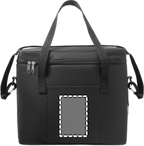 Cooler bag in 600D RPET polyester with PU coating. With 1 front pocket and 1 inner mesh pocket. Isolation PEVA lining with 6mm PE foam. Includes 2 handles and 1 adjustable shoulder strap. Capacity 18L