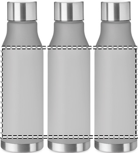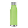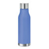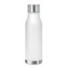 Drinking bottle in RPET with rubberised finish (frosted transparent) and stainless steel cap with inner RPET lid and silicone ring. BPA free. Leak-free. Capacity: 600 ml. Not suitable for carbonated drinks.