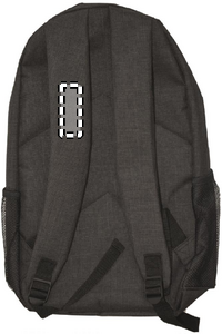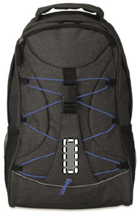 Backpack in 600D 2 tone polyester with colourful contrasting facing and glow in the dark cord on the front panel. Mesh pockets on both sides.