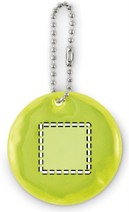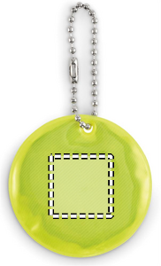 Round reflective keyring in PVC. For promotional use.