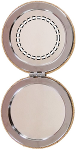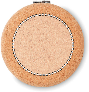 Rounded double sided compact mirror with cork finish cover. Cork is a natural material, due to its structural nature and surface porosity the final print result per item may have deviations.