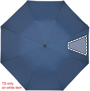 21 inch 2 fold auto open umbrella in 190T pongee with zinc plated steel shaft, ribs and tips. Black rubberised ABS handle. Includes matching pouch. Manual closure.