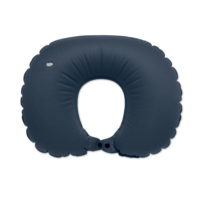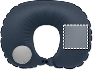 Fast inflatable pillow in milk silk fabric with built-in pump and release system. Pouch in self-material.