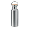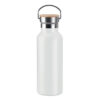 Double wall stainless steel insulating vacuum flask with lid in bamboo and carry handle. Capacity: 500 ml. Sublimation print available on white item only. Leak free. Bamboo is a natural product, there may be slight variations in colour and size per item, which can affect the final decoration outcome.