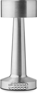Iron table lamp with 12 LED lights, stepless dimming, 3 light modes and touch control. USB port and rechargeable Li-Ion 1200 mAh battery. 6hr working time after fully charged. Including charging cable.