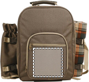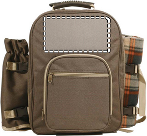 Picnic backpack for 4 people including blanket, bottle holder and quality table accessories. Bag in 600D polyester.