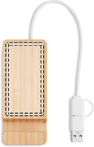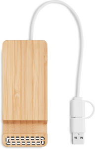 4 ports USB-C/A hub in bamboo case. Output: 2 x Type-A and 2 x Type-C. Input:2-in-1 Type-C & Type-A. Cable length: 20 cm.