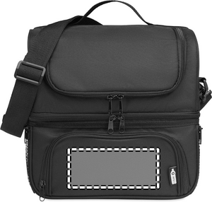 Insulated cooler bag in 600D RPET includes a reusable PP 1900ml capacity lunch box. Stay healthy and bring a homemade lunch to work or bring some drinks to the park or beach for a relaxing afternoon. There are 2 different compartments to store both hot and cold food or drinks seperately. Carry the bag by the adjustable and detachable shoulder strap for more comfort. 2mm aluminium foil lining.