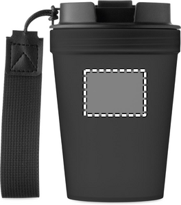 Single wall tumbler in PP, with RPET polyester strap. Leak-free. Capacity: 300 ml. As this is a single walled tumbler, heat transfer can still occur.