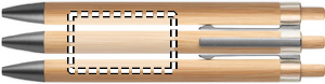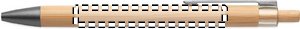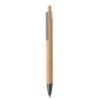 Push button pen with bamboo barrel and metal clip. Blue ink.