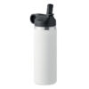 Double wall recycled stainless steel (90% recycled stainless and 10% stainless steel) insulated vacuum bottle with grip handle lid in PP and integrated straw built-in straw cap. Leak-free. Capacity: 500 ml.