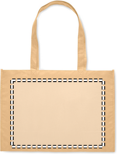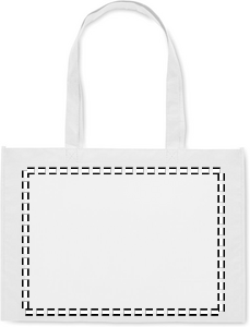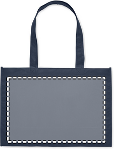 Shopping or beach bag in RPET non-woven with gussets and long handles. 80 gr/m².