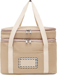 Cooler bag with 2 compartments in washed canvas with cotton strap. 320 gr/m². Insulation: 15C PEVA with 6mm PE foam.