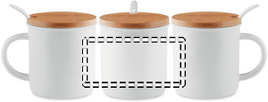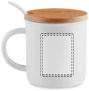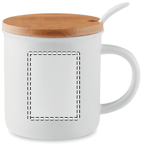 Porcelain mug of 380 ml capacity with spoon and bamboo lid. Individual box. Bamboo is a natural product, there may be slight variations in colour and size per item, which can affect the final decoration outcome.