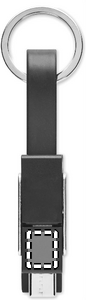 Key ring with 4-in-1 charging cable. In/Output: Type-C x2, Type-A, Micro USB.