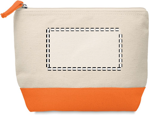 Cosmetic bag in cotton with coloured bottom and matching zipper puller. 340 gr/m².