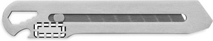 Stainless steel retractable knife with 8 carbon steel blades, bottle opener, wrench and ruler.