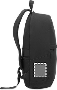 15 inch laptop backpack in recycled pre-consumer cotton and recycled polyester (70%/30%). It has front zippered pocket, zippered pocket on the back side. Soft padded back and shoulder straps. Trolley holder on reverse side.