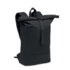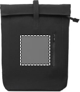 Zippered rolltop 15 inch laptop backpack in recycled pre-consumer cotton and recycled polyester (70%/30%). Front zippered pocket. Padded back and shoulder straps. 340gr/m².