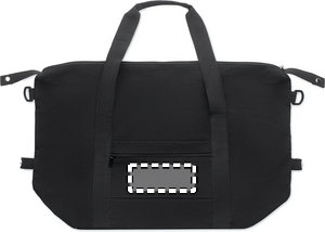 Weekend bag in recycled pre-consumer cotton and recycled polyester (70%/30%) with lining 210D RPET polyester. It has a front slip pocket, zippered back pocket a removable and adjustable shoulder strap and padded bottom. Trolley holder on reverse side.