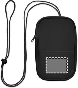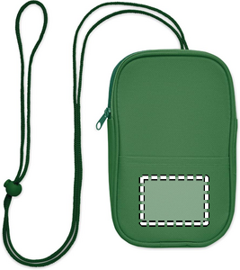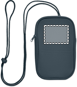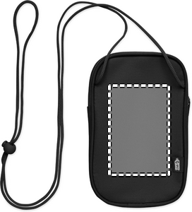 Cross body travel pouch in 600D RPET polyester and 210D RPET lining with cord strap.