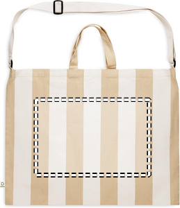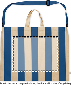 Extra large striped beach bag in 280 gr/m² recycled cotton (80%) and recycled polyester (20%) with inner pocket. Short handles and one large adjustable shoulder strap.