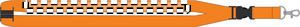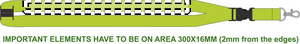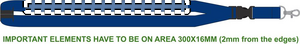 Lanyard with metal hook, detachable buckle and safety breakaway. 20 mm wide.