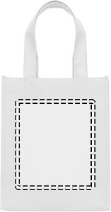 Small gift or goodie bag in RPET non-woven with short handles and gussets. 80 gr/m².