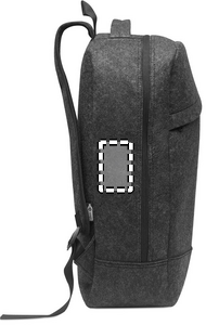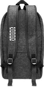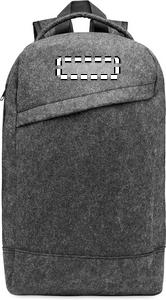 13 inch laptop backpack in RPET felt with padded shoulder and strap with a main internal compartment. Zippered compartment inside. Trolley holder on reverse side.