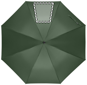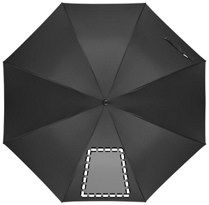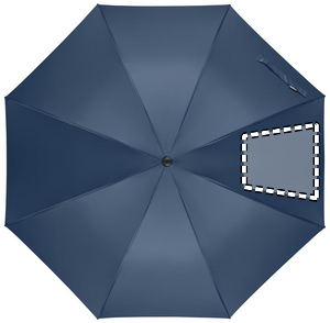 27 inch auto open wind-proof umbrella in 190T RPET pongee. Fibreglass shaft and ribs. Wheatstraw and recycled ABS handle. Plastic tips and top.