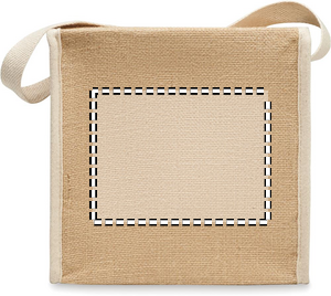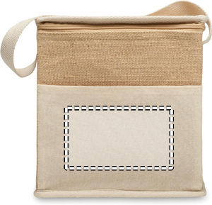Jute cooler bag with cotton strap and front pocket for 6x0,5 L bottles. Isolation material: 3 mm aluminium foil. Capacity 3L.
