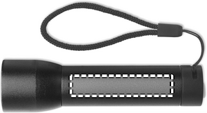 Recycled aluminium rechargeable torch with multiple light settings and zoom in/out function. Includes one replaceable 14500 lithium battery. Powerful and durable for everyday use.