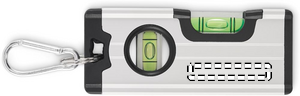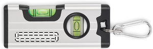 Mini magnetic double spirit level in aluminium case with carabiner. The carabiner is not for climbing (non-professional use).
