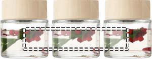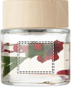 Glass jar with wooden fragrance diffuser with flower decoration inside, with 6 reed stick. Fragrance: vanilla. Capacity: 100ml.