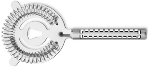 Cocktail kit in cotton pouch with string. Including 5 piece: a double-sided measuring jigger (15 & 30 ml), wooden muddler, cocktail strainer, drink stirrer and waiter's corkscrew knife.