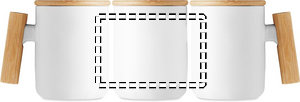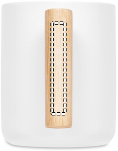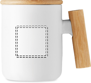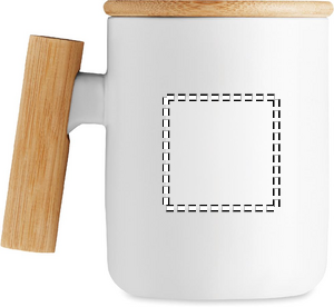 Porcelain mug with bamboo lid and handle. Capacity: 380 ml. Bamboo is a natural product, there may be slight variations in colour and size per item, which can affect the final decoration outcome.