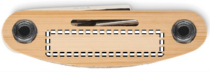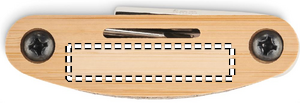 Stainless steel multi-function pocket tool with bamboo cover. 11 functions. It includes: hex keys, flat wrench , sleeve extension, Phillips screwdriver and socket spanner.