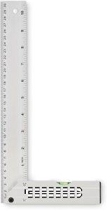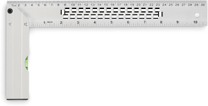 Aluminium set square with spirit level. Ruler 30 cm.